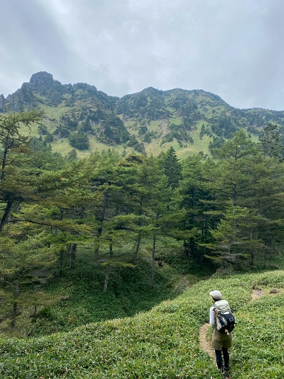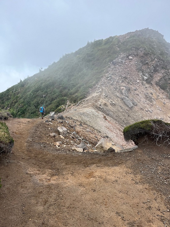 予報では午後には晴れるとのことなので、私どもはゆっくり登っていこう、そのうちにガスもなくなるだろう、と期待して歩みを進める。