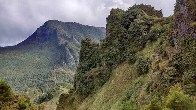Jバンドから見下ろすと、自動車くらいの大きさの岩が窪地にゴロゴロと転がっています。この外輪山から落下したものに違いありません。
