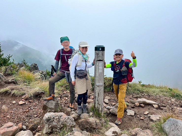 登り返して黒斑山山頂で撮った写真は、朝登ってきたときに撮った写真と同じで、背景が真っ白なガスの写真でした。