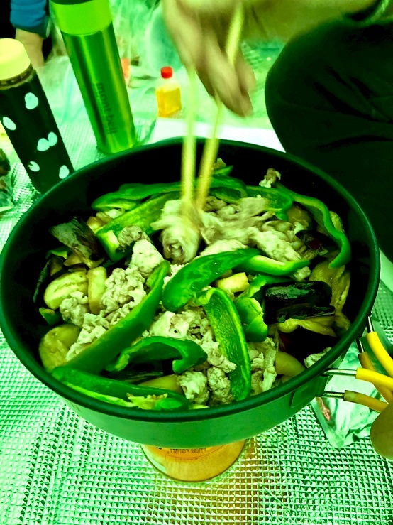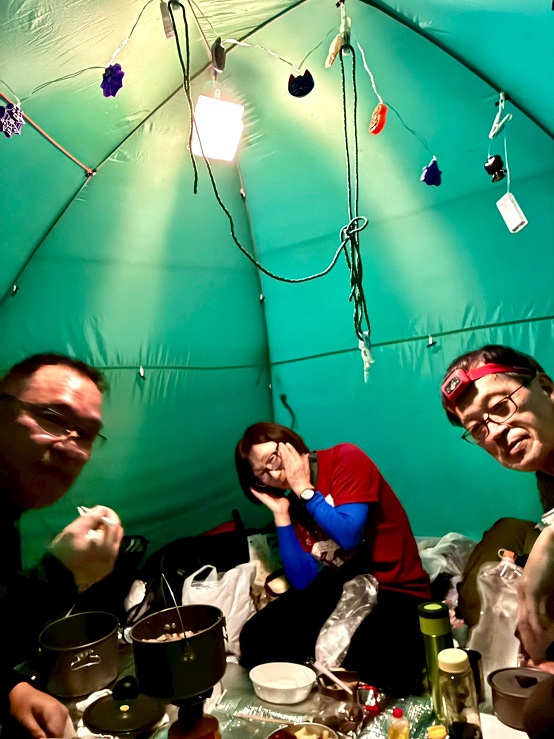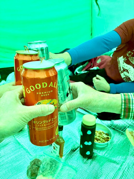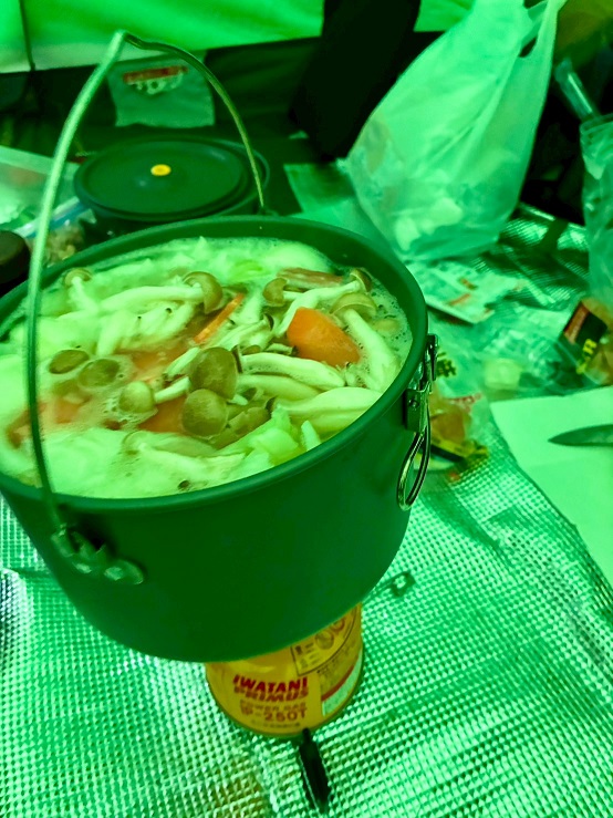 4時頃からビールで乾杯して夕餉が始まり、6人用の広いテントを4人で使って、まったりと過ごしました。