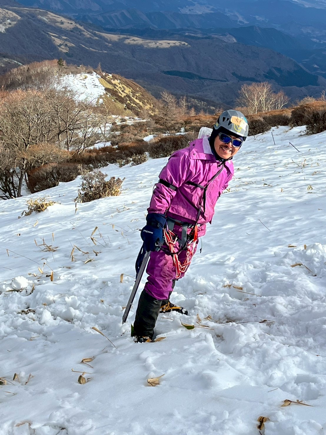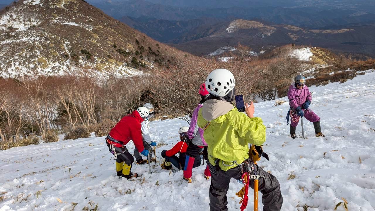 そして、小丸山を超え、標高1700m辺りでロープを貼り、滑落停止訓練を行いました。