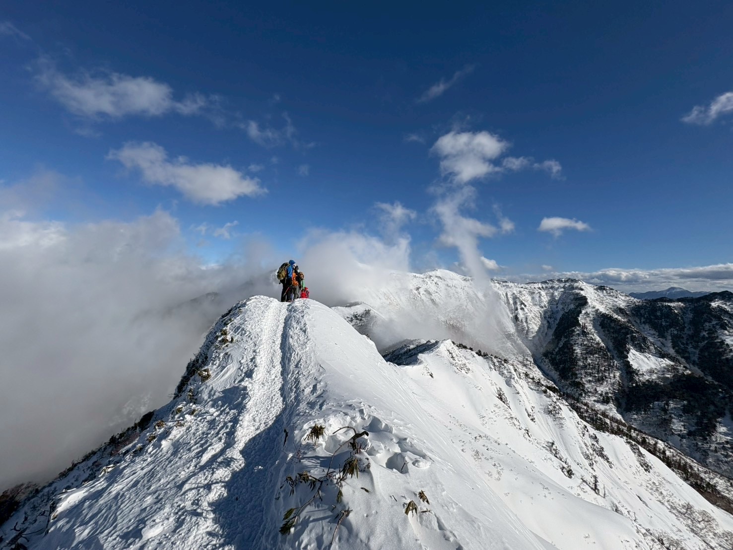 川場スキー場リフト山頂駅から剣ヶ峰山を目指す。風が強く、武尊山まで行くことは諦めて、下山。風が強かったものの晴天で眺望は素晴らしかった。