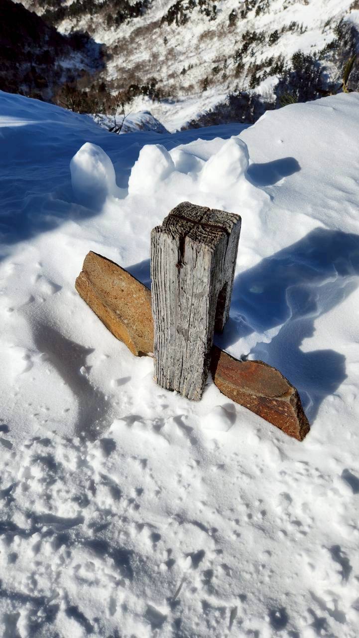 山頂標識は雪に埋もれてます